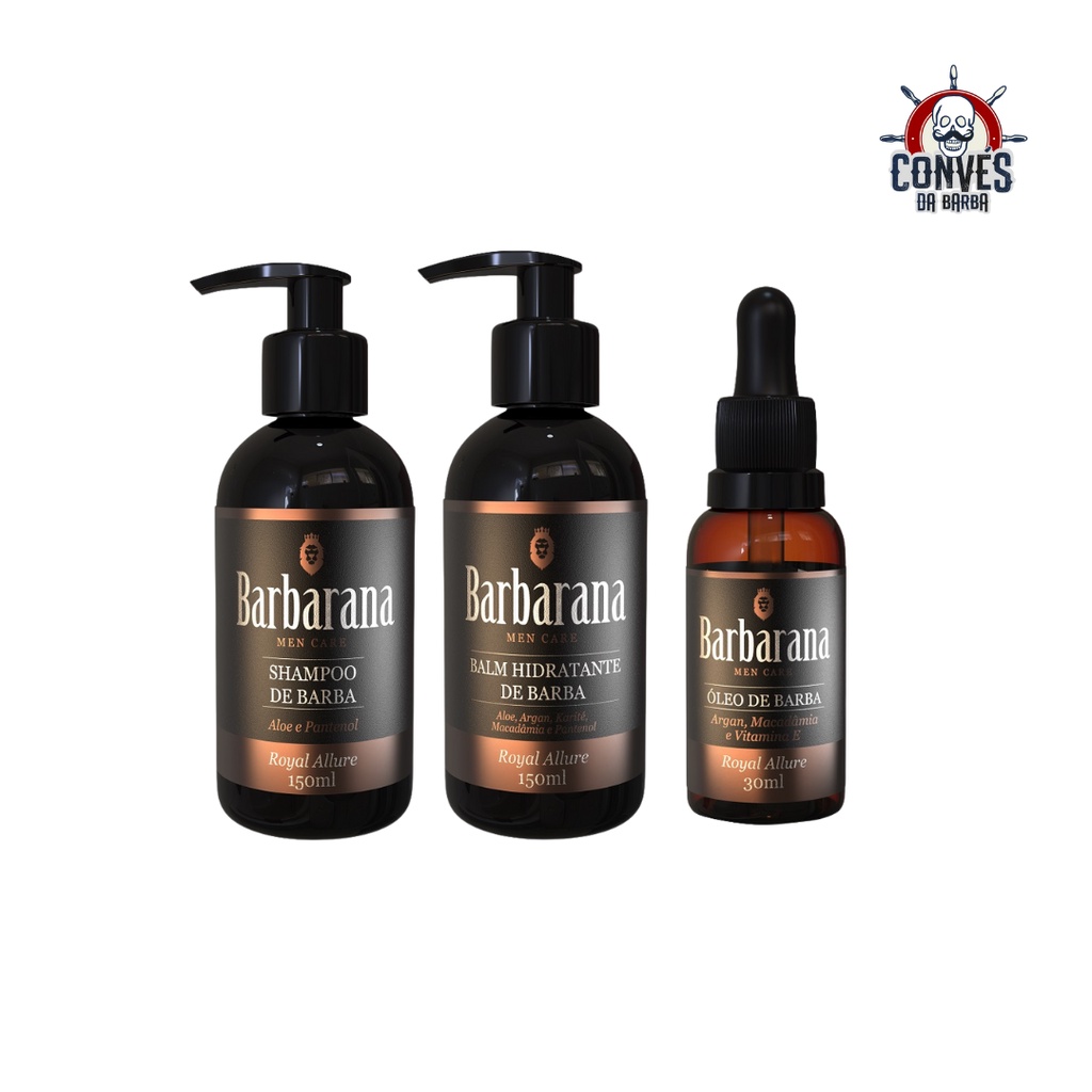 Kit Shampoo, Condicionador, Balm e Óleo para Barba Barbarana
