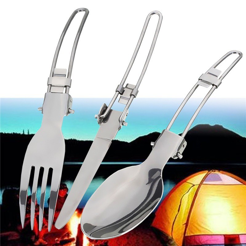 kit Talheres De Metal Dobráveis Camping Faca Garfo Colher
