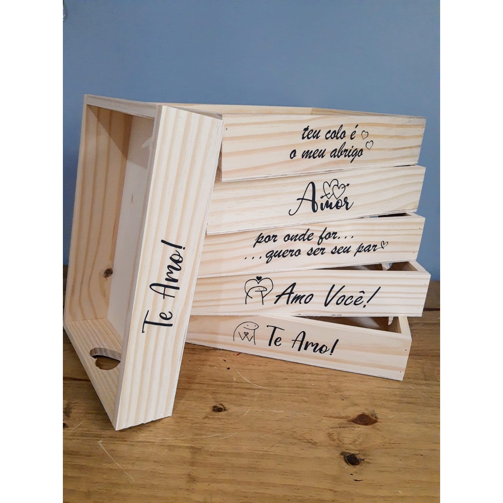 Caixa de Madeira para Cesta de Café da Manhã para Dia dos Namorados 35x25