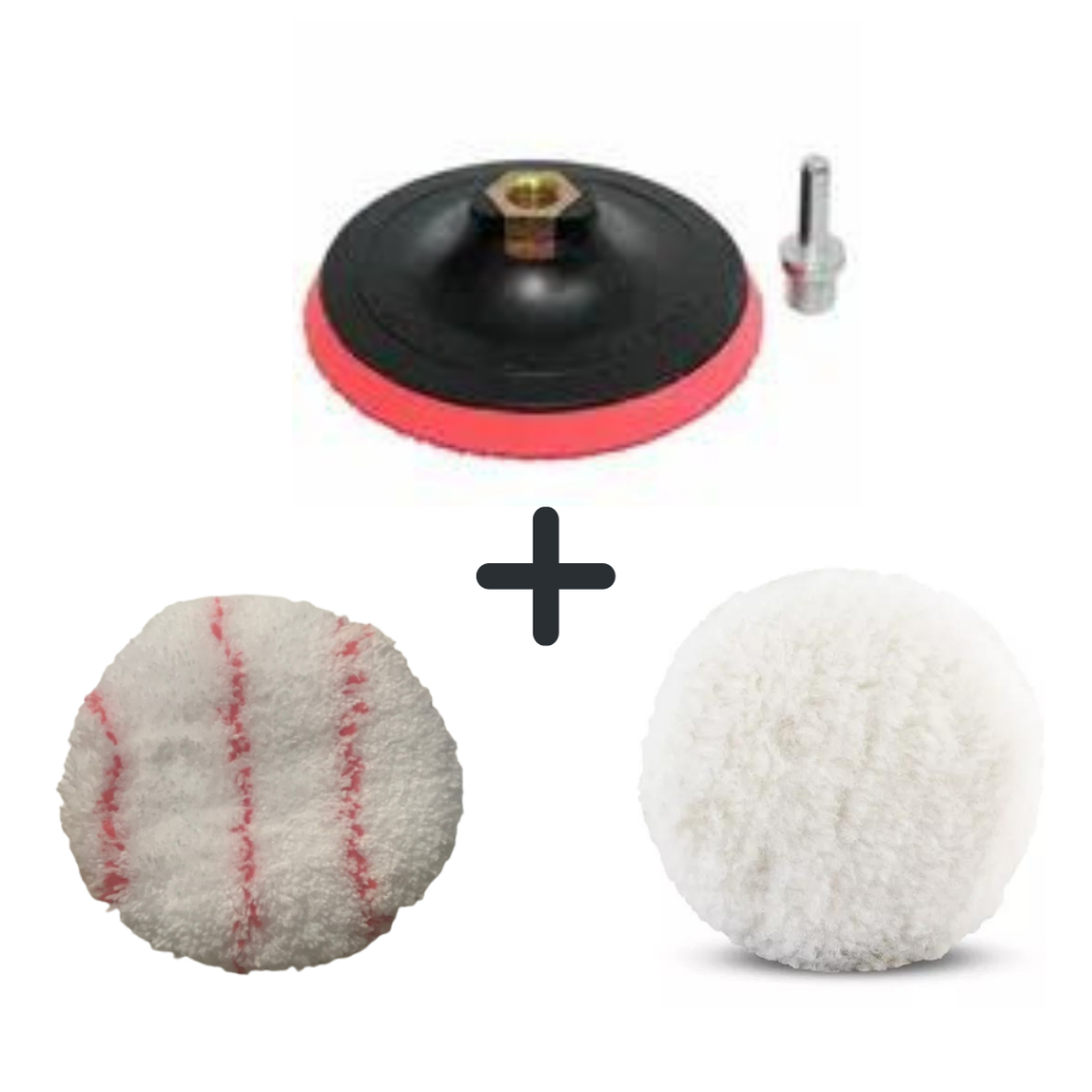 Kit Boina Lã + Boina Microfibra Polimento Automotivo 125mm 5 Polegadas Com Suporte Base Aderente Para Politriz Furadeira e Parafusadeira