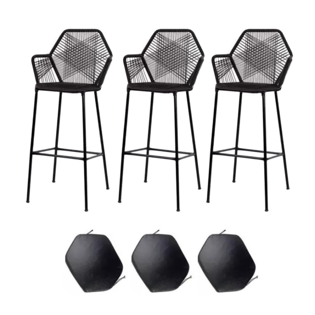 kit 3 banquetas alta junco preto bancada moderna cozinha balcão bares