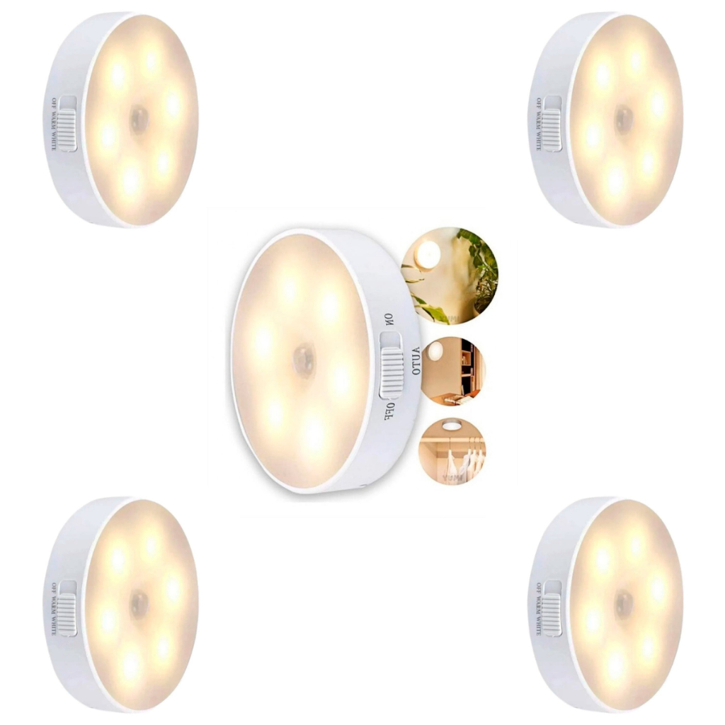 Kit 5 Luminárias Lâmpada Led Com Sensor Presença Sem Fio Usb Recarregável Casa Quarto Armário Escada Banheiro