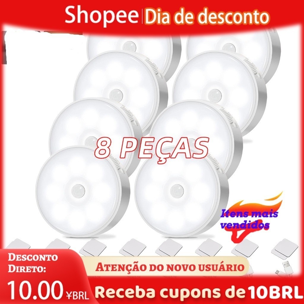 Kit 8 LUZ FRIO/LUZ QUENTE Luminárias Lâmpada Led Sem fio com Sensor Presença recarregável