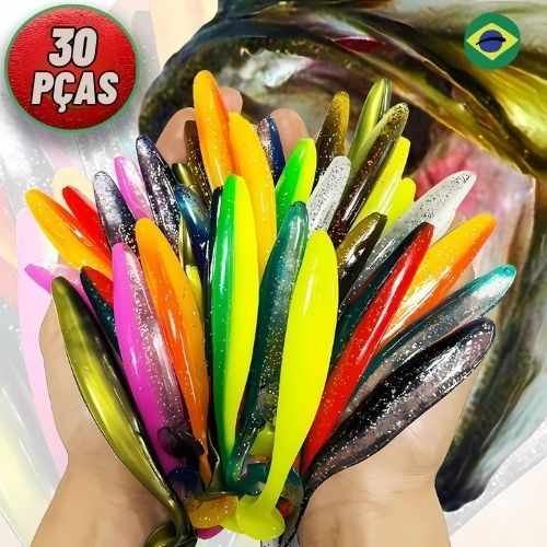 Kit 30 unidades Isca Artificial Soft Shad Silicone 7cm 4g - Ideal para Tucunaré Robalo Traíra