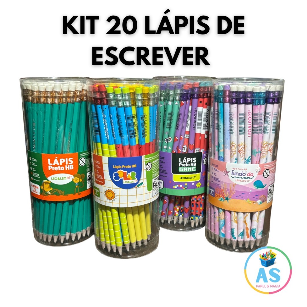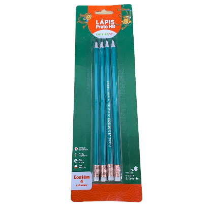 Conjunto De Lápis com 4 unidades Lápis Preto Grafite Com Borracha Hb Verde Sextavado Leo E Leo