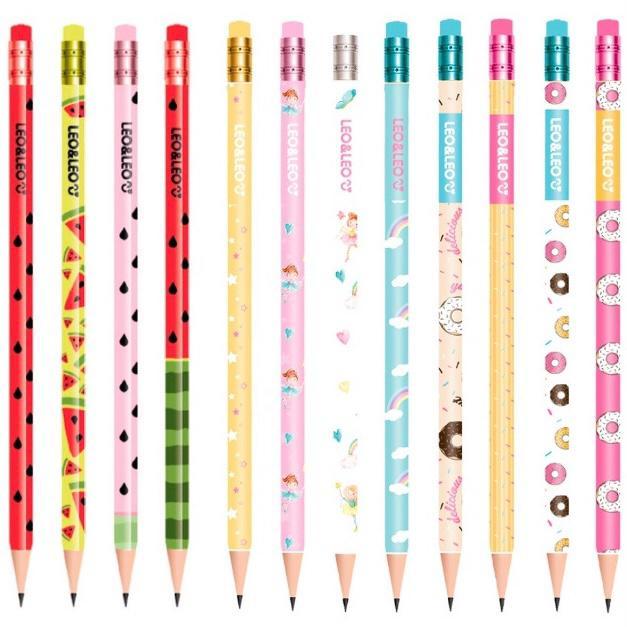 12 Unidades Lápis Preto Hb De Escrever - Marca LeoLeo C/ Borracha Na Ponta
