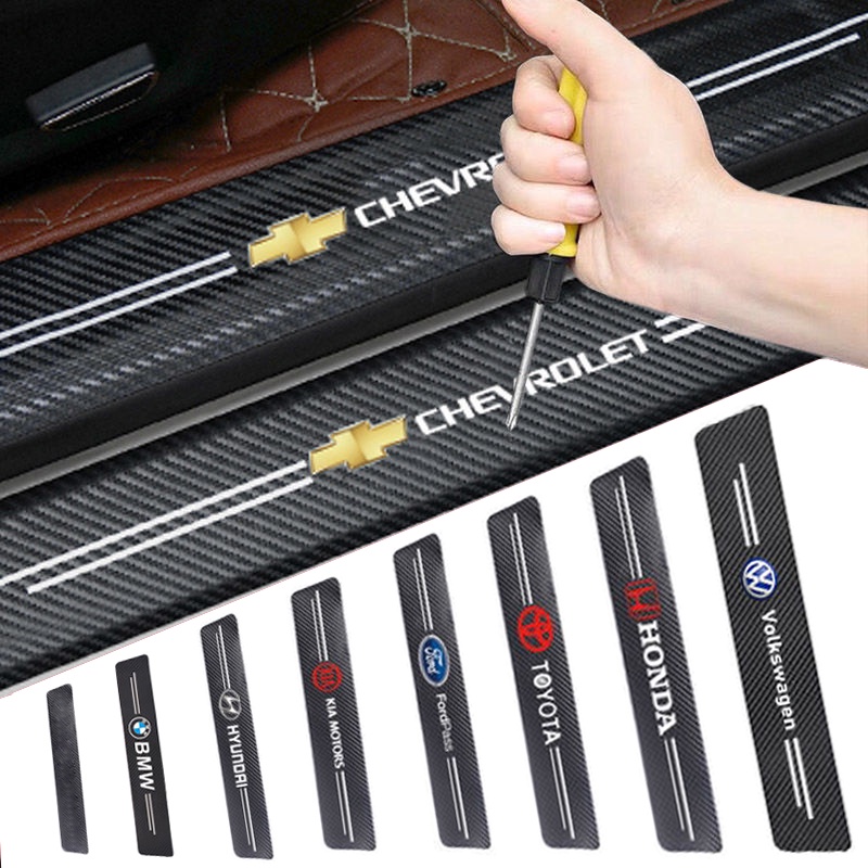 4 Peças Adesivo De Vinil/Fibra De Carbono/Anti-Riscos/Decorativo Para Soleira Da Porta