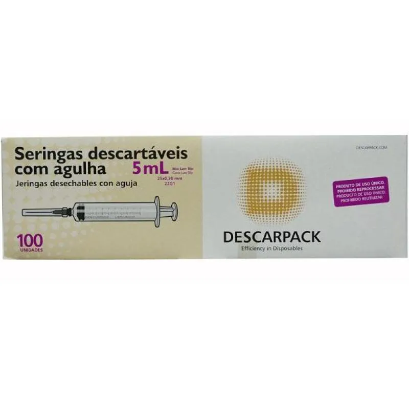 Seringa Descartável 5ml Luer Slip Estéril C/100un - Descarpack