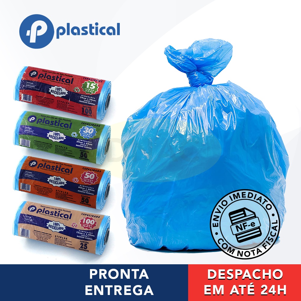 Saco de Lixo Azul Em Rolo 100L Litros Econômico Resistente e Reforçado Kit PackLixo