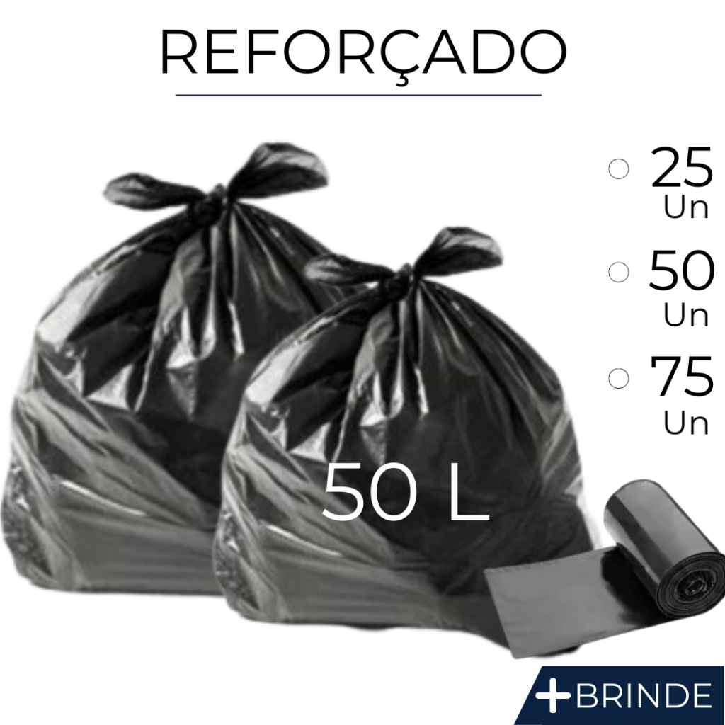 Saco de Lixo Reforçado 50 Litros Rolo Resistente Preto