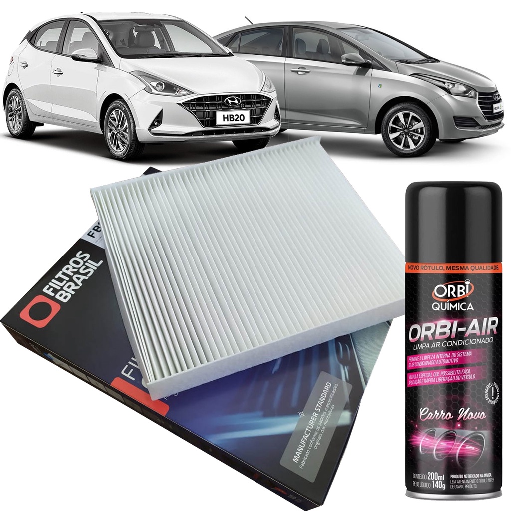 Kit Filtro Cabine Ar Condicionado + Higienizador Hyundai Hb20 1.0 1.6 2012 2013 2014 2015 2016 2017 2018 2019 2020 2021