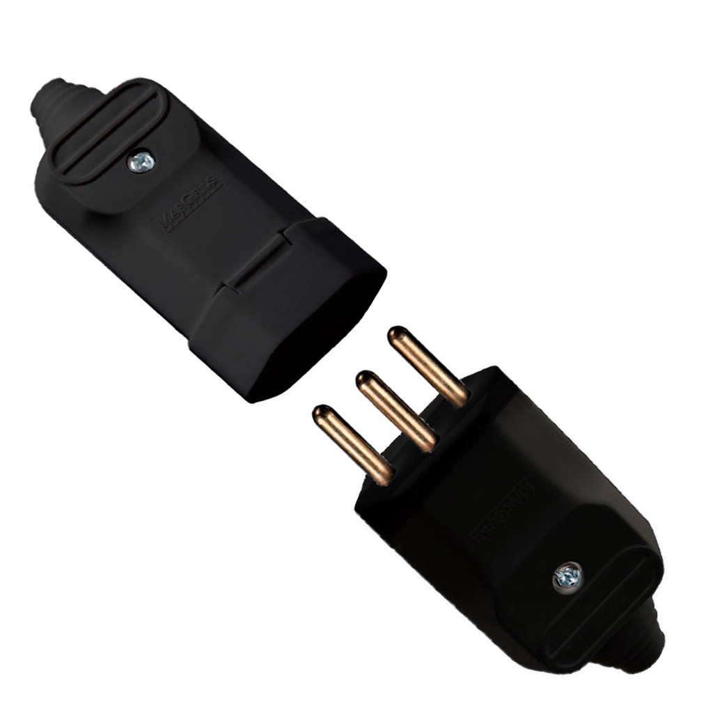 Kit P/ Extensão Plug + Tomada 2P+T 20A C/ Prensa Cabos Preto