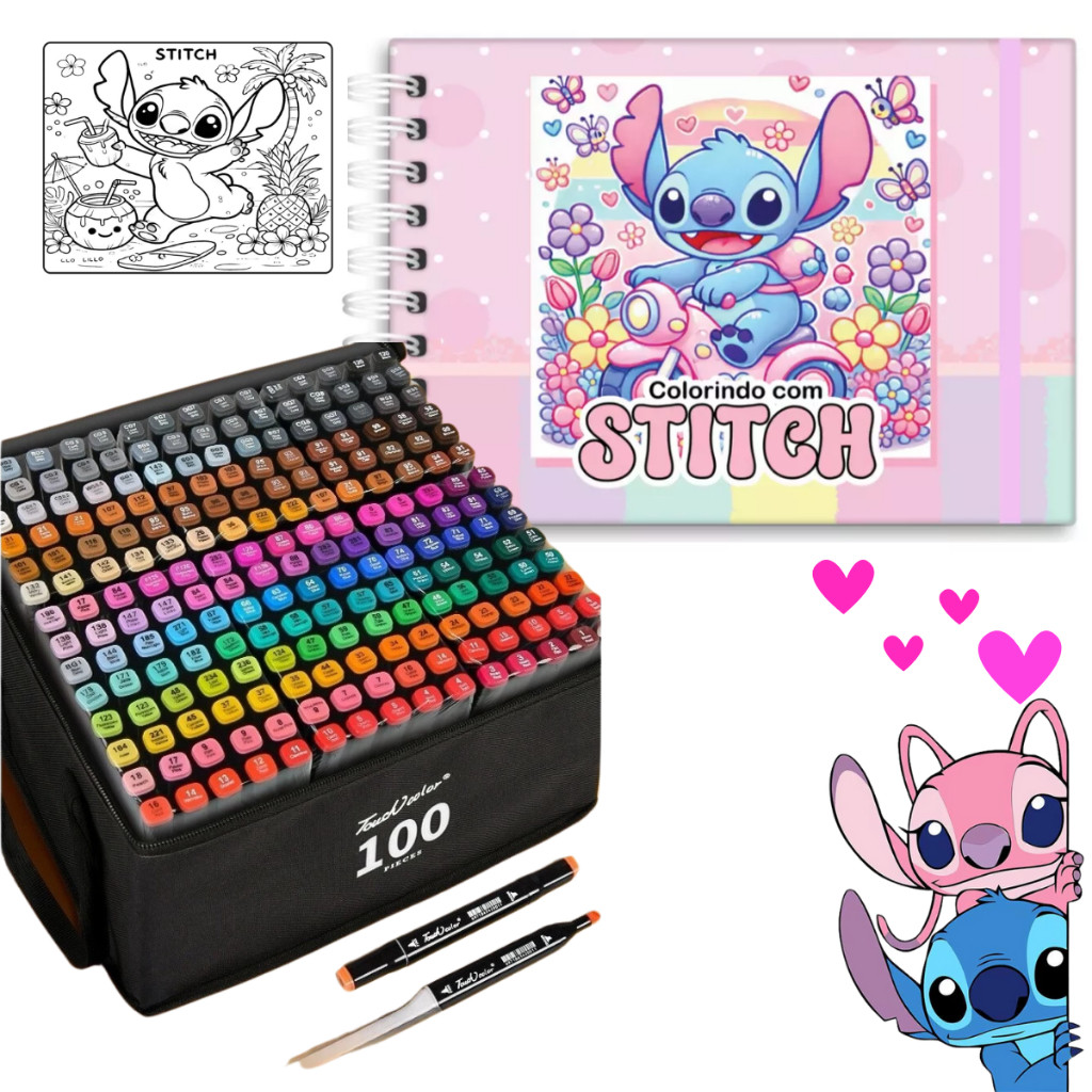 Kit Livro De Colorir Stitch Estilo Bobbie Goods 50 Folhas 180g Canetinhas 24/36/48