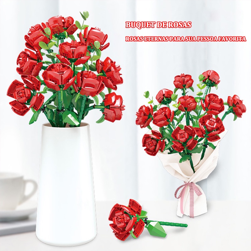 Bloco De Flores Rosa Compatível Com Lego Decoração De Sala Presente De Dia Dos Namorados