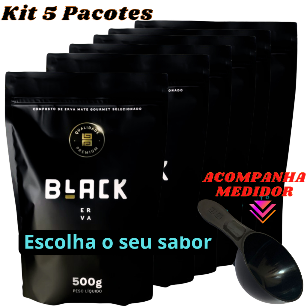 KIT COM 5 PACOTES BLACK ERVA MATE TERERÉ + ACOMPANHA SCOOP
