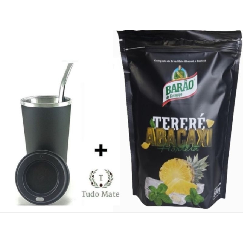 Kit Tereré Copo com Tampa e Bomba + Erva Mate Tereré