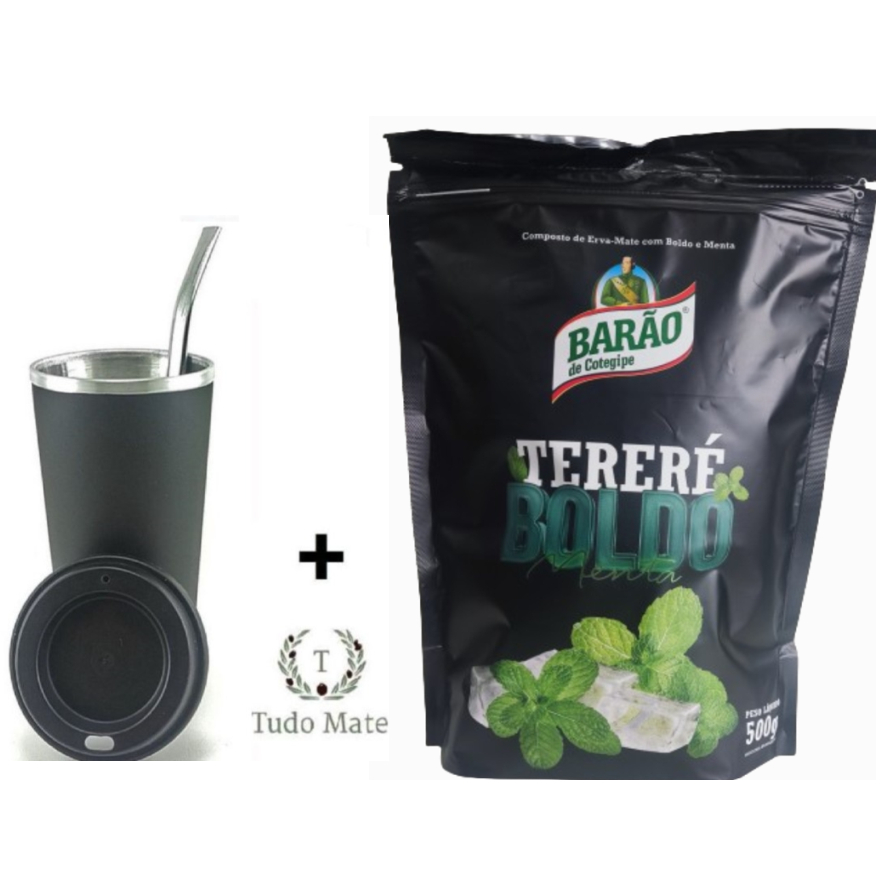 Kit Tereré Copo com Tampa e Bomba + Erva Mate 500 Gramas