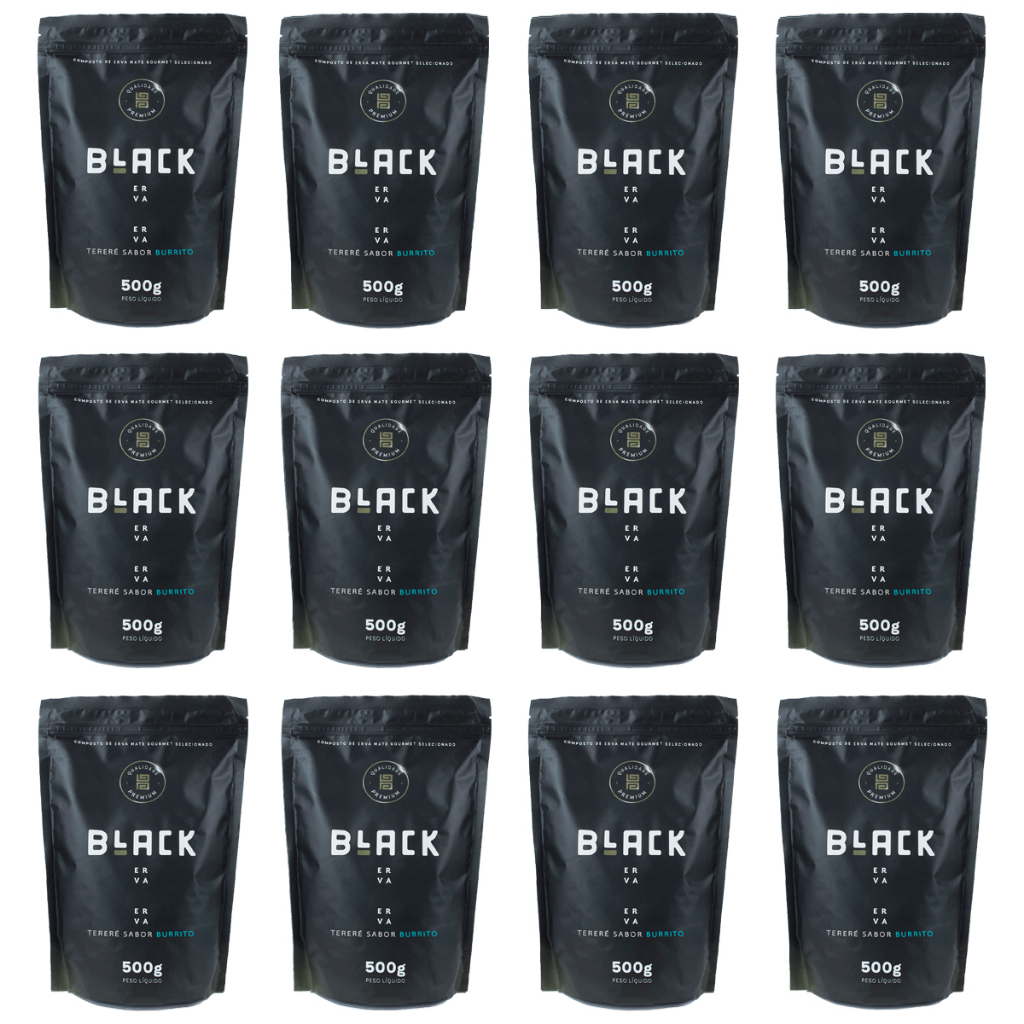 Kit com 12 Pacotes de Erva Mate Gourmet Para Terere Black Erva 500g