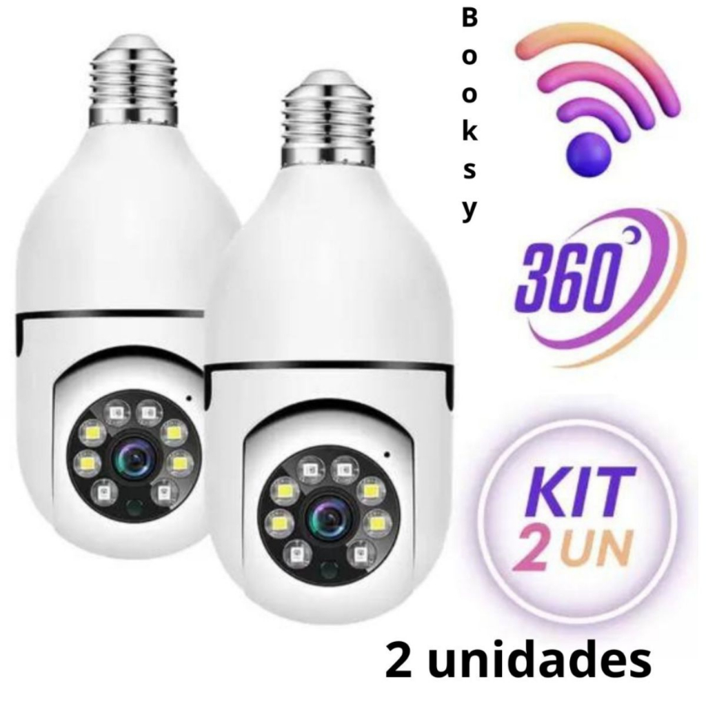 Kit 2 Câmera de Segurança gira 360 a Prova D'água Infravermelho Lâmpada Sem Fio