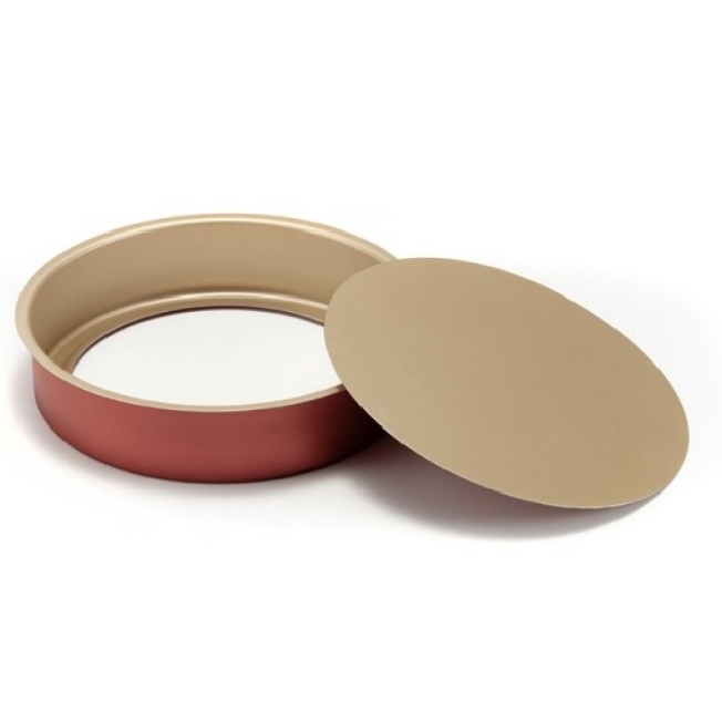 Forma Tabuleiro Assadeira Redonda Nr 01 c/ Fundo Removível Alumínio Antiaderente Cereja e Bege - Forma de Bolos