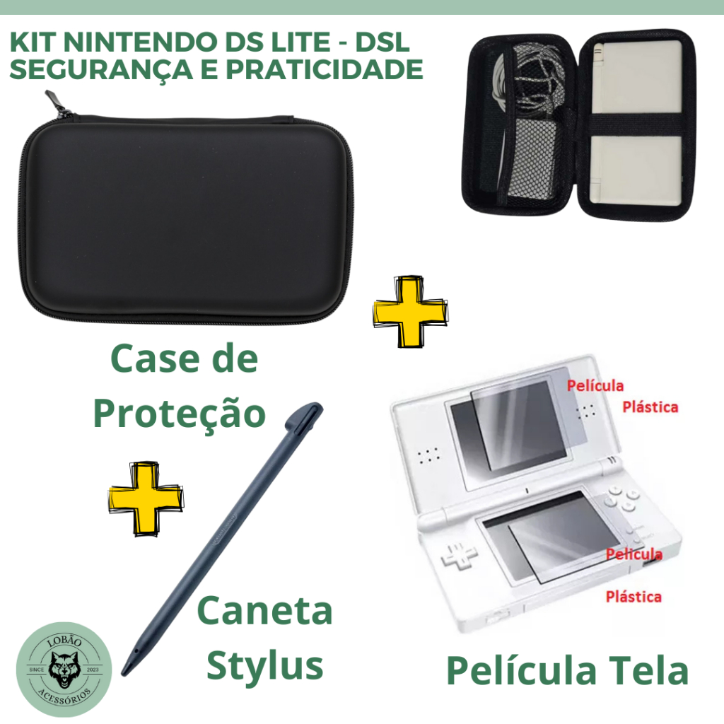 Kit Proteção Completa: Case Estojo + 2 Películas + Caneta Stylus para Nintendo DS Lite DSL