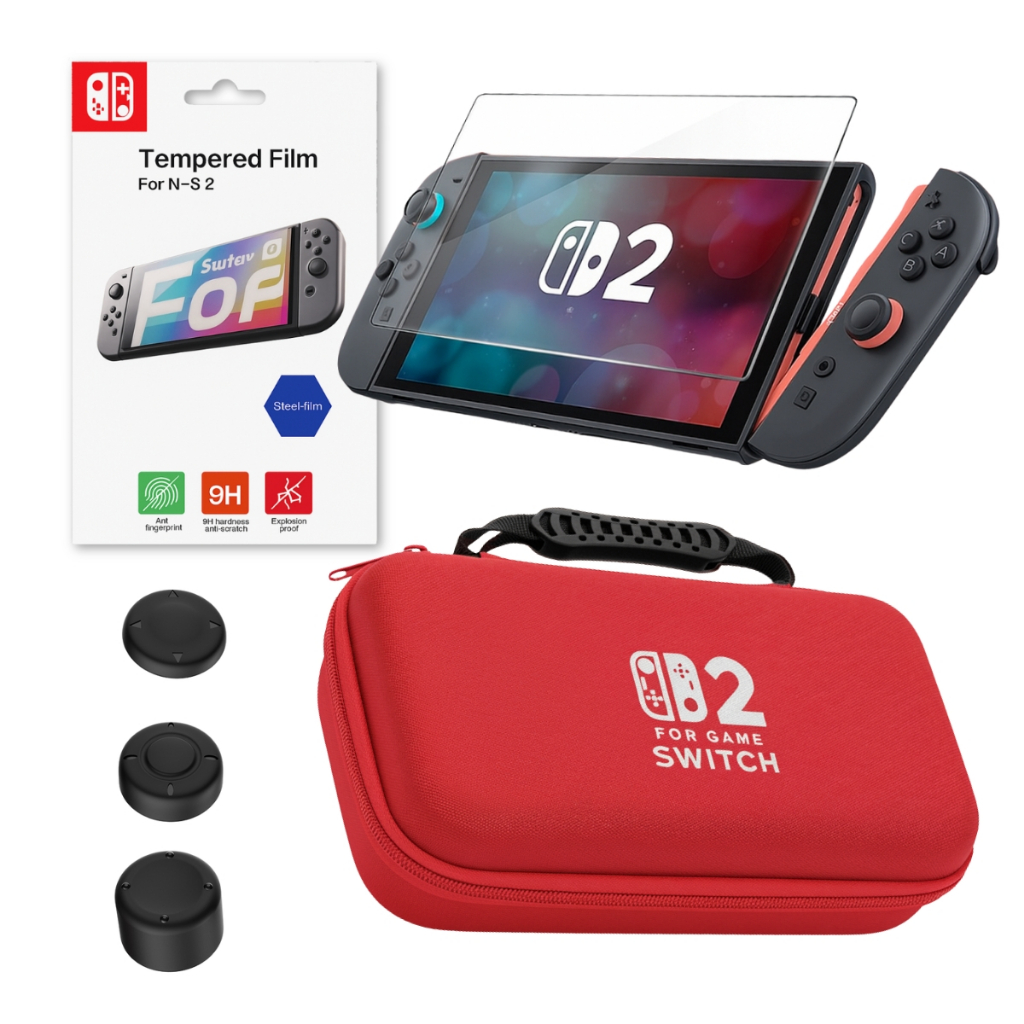 Kit Estojo Case Proteção + Película Vidro Temperado + 3 Pares Grip Analógico para Nintendo Switch 2