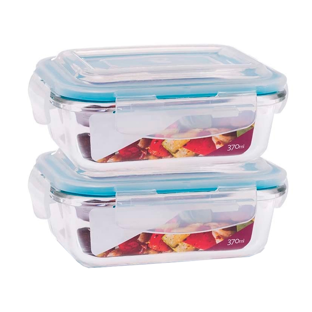 Kit 24 Potes Pote de Vidro Borossilicato Retangular 330ml Com Tampa Trava Hermética Resistente Vai ao Forno Microondas e Freezer Organizadora de Geladeira Marmita Alimentação Fitness Super Vedação em Sílicone