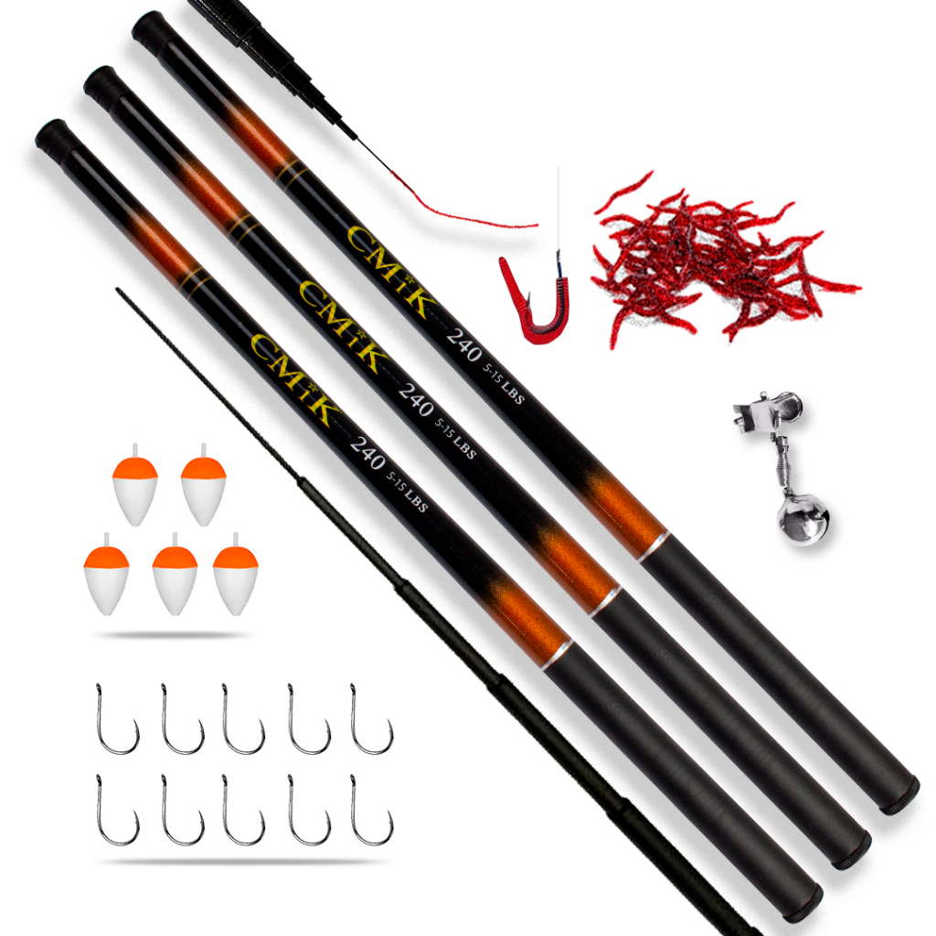 Kit 3 Varas Telescópicas 3,00M Mais 10 anzóis 5 Boias 5 Iscas artificiais de minhoca 1 Sino Kit Pescaria Tilápia Lambari Piau entre outros Pesca