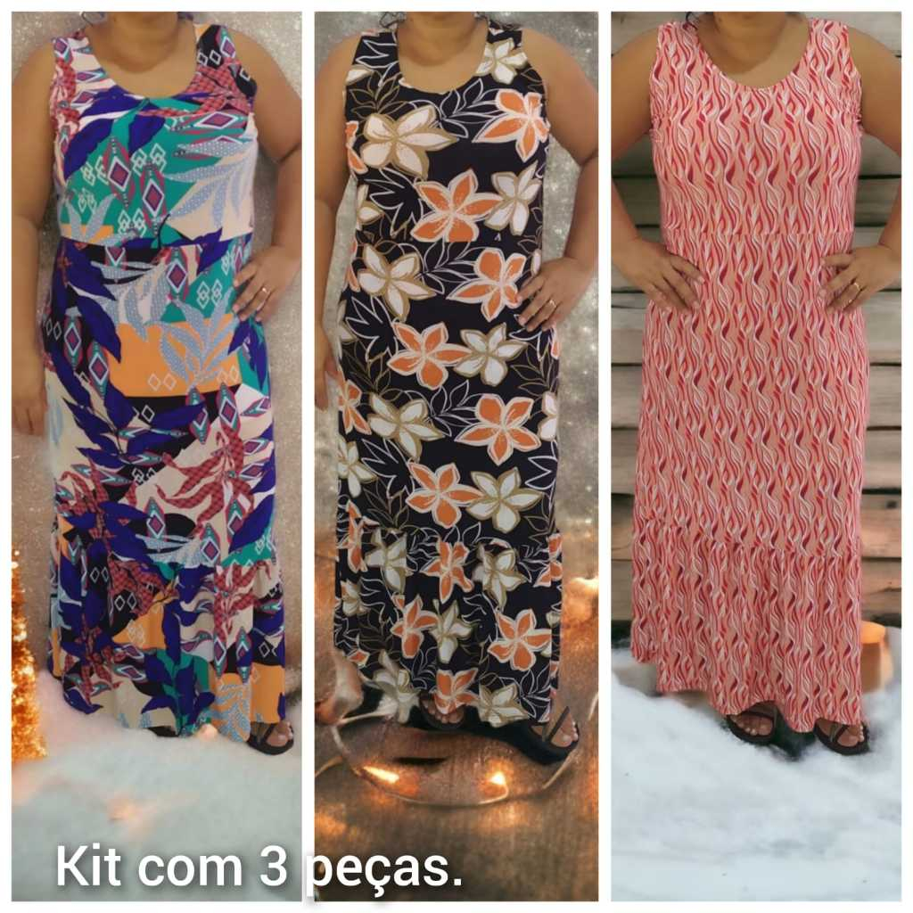 Kit Com 3 peças; Vestido Longo Feminino Plus Size, Leve, Casual, Soltinho, Multiuso