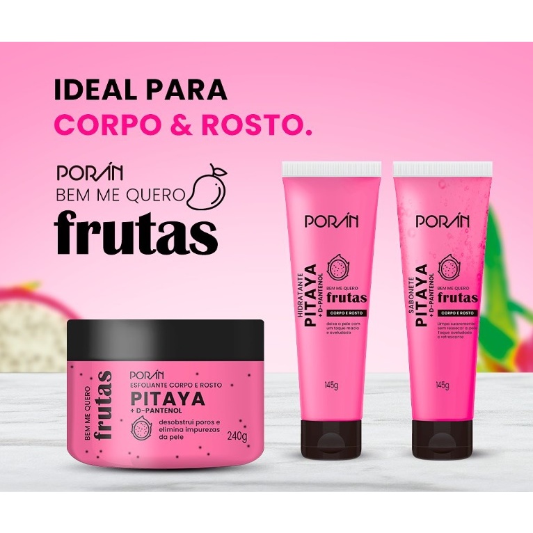Kit Esfoliante, Hidratante, Sabonete : Corpo e Rosto PITAYA + D-PANTENOL - PORÁN