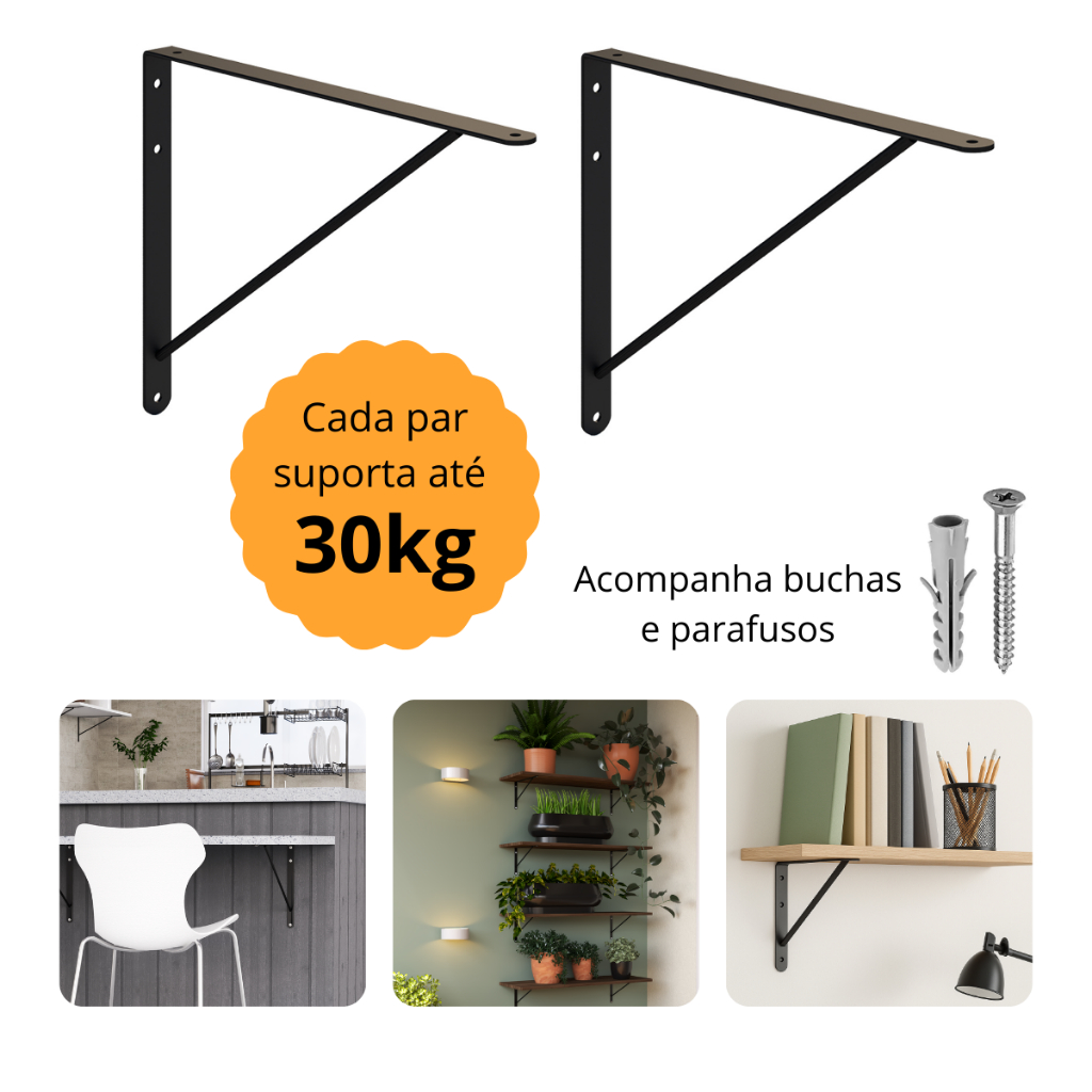 Par Cantoneira Mao Francesa Suporte Prateleira Kit 2 Unidades 10cm/15cm/20cm/25cm/30cm Aco Reforcado