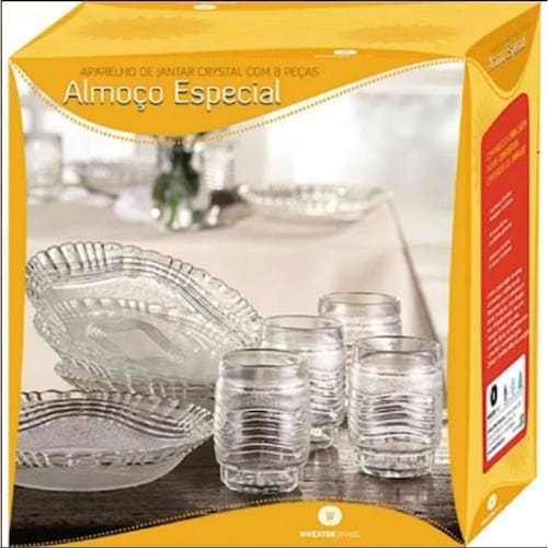 Aparelho de jantar vidro jogo pratos/copos 8 pçs crystal