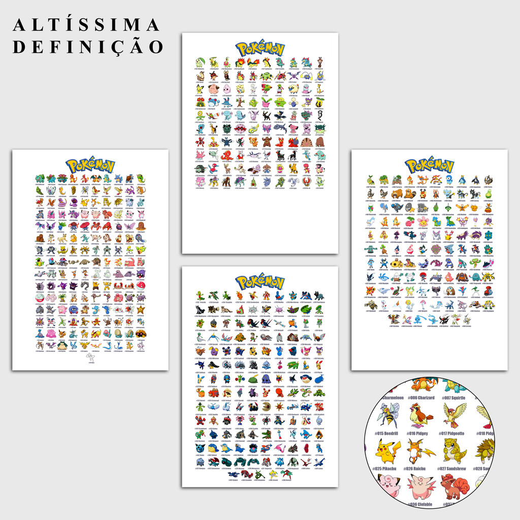 Pokémon de 01 a 20 - Placa decorativa MDF - 14x20 28x20- Quadro parede & decoração - Presente - Anime - Manga - jogo - pokemon - pikachu - ash