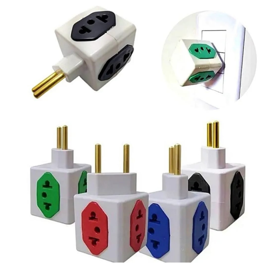 Kit 02 Adaptador Elétrico de Tomada Benjamim , Cubo Power (cores sortidas), Aceita Padrão antigo e/ou padrão novo 2p ou 2p + T podendo ser ligados até 4 aparelhos simultaneamente 127v/220v – 20A