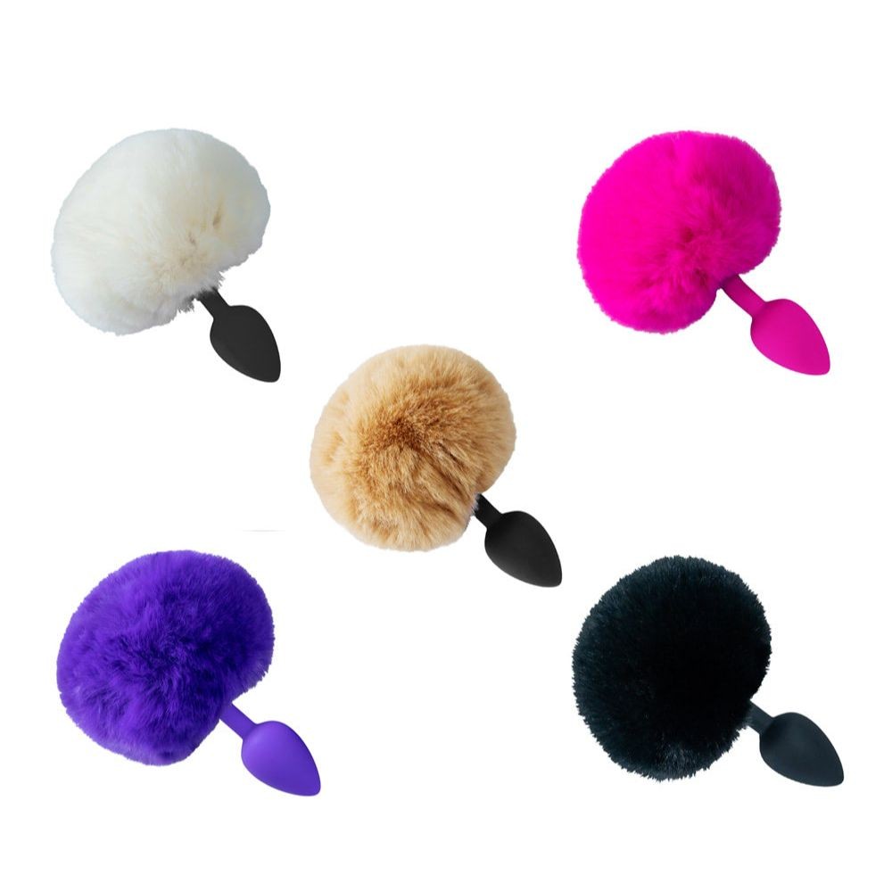 Plug Anal De Aço Inoxidável Tamanho P Rabo de Coelho Pompom Dilatador Anal