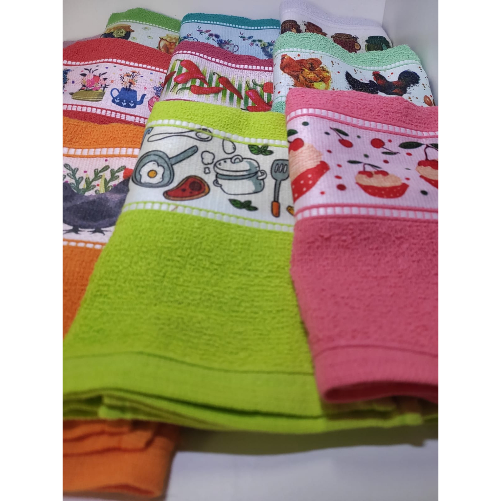Kit C/ 10 Pano Copa Felpudo Atoalhado Colorido - 100% Algodão/0,42 cm x 0,64 cm