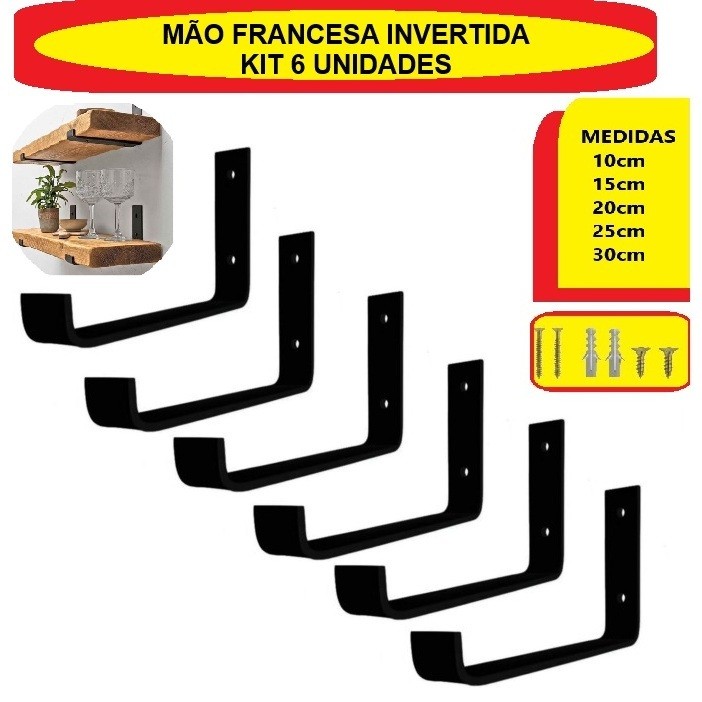 Kit 4 Mão Francesa Invertida Suporte Cantoneira Para Prateleira