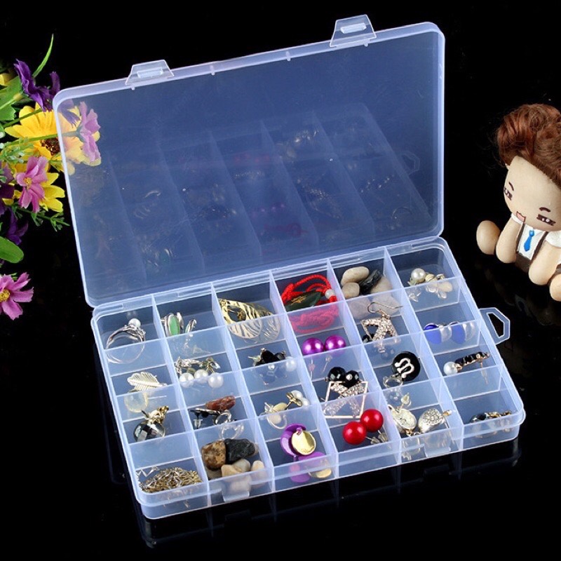 Porta Objetos Box Organizador c/ 24 ou 28 Divisórias Caixinha , Transparente Multiuso Porta Treco Comprimidos Brincos Miçangas