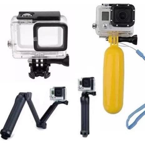 Pacote de acessórios para Gopro Hero 5 Gopro Hero 6 com 3 itens Caixa Estanque + Tripé 3 way articulado + Bastão Flutuante