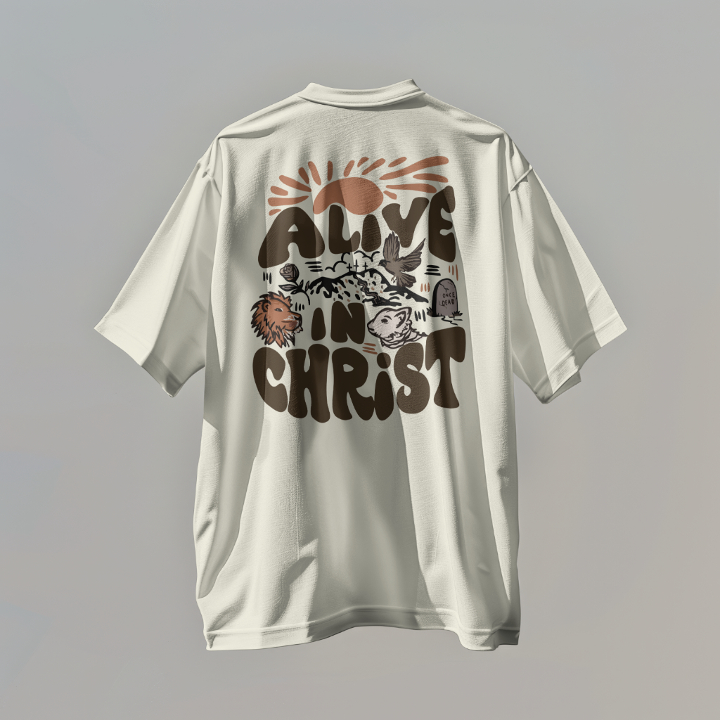 Camiseta Jesus Cristã Oversized Streetwear Camisa Femina e Masculina 100% Algodão Premium Alive in Christ
