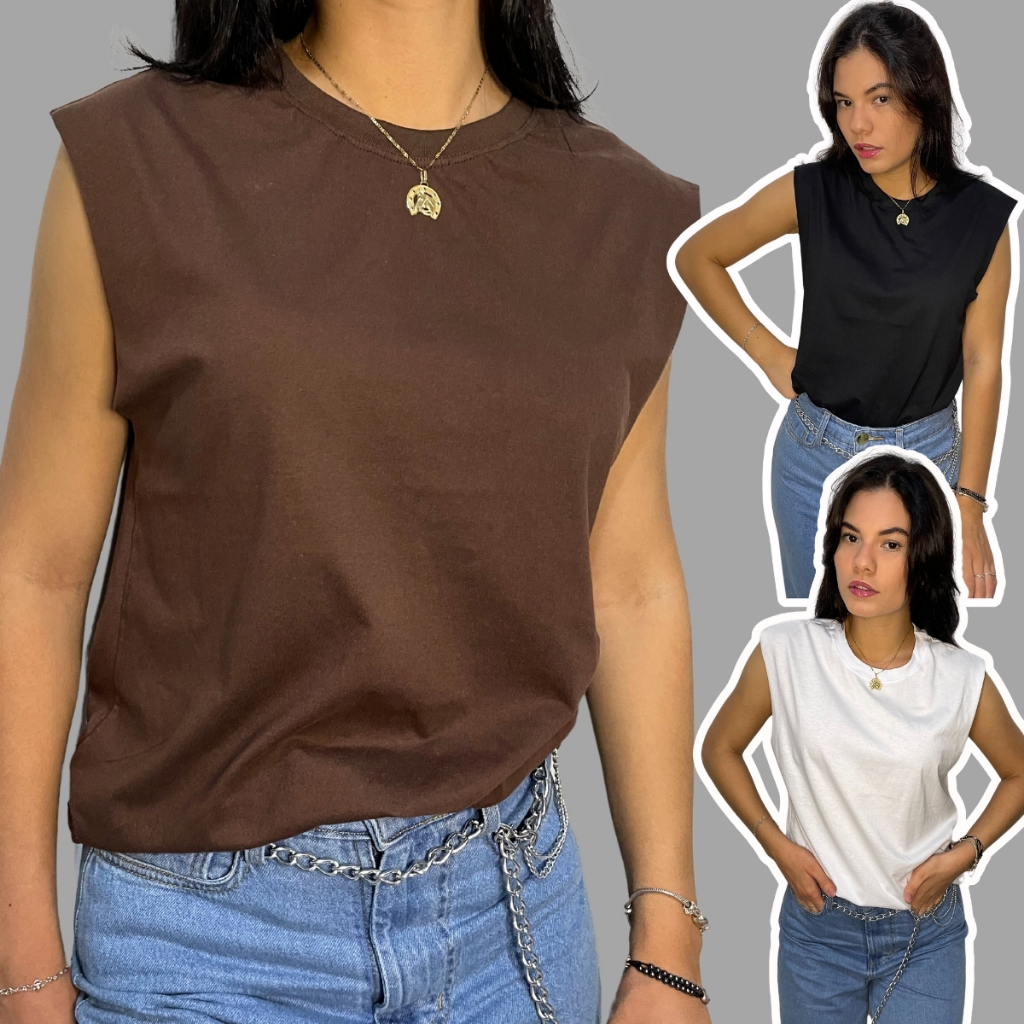 Blusa feminina blusinha regata básica dia a dia sem manga elegância e versatilidade gola redonda