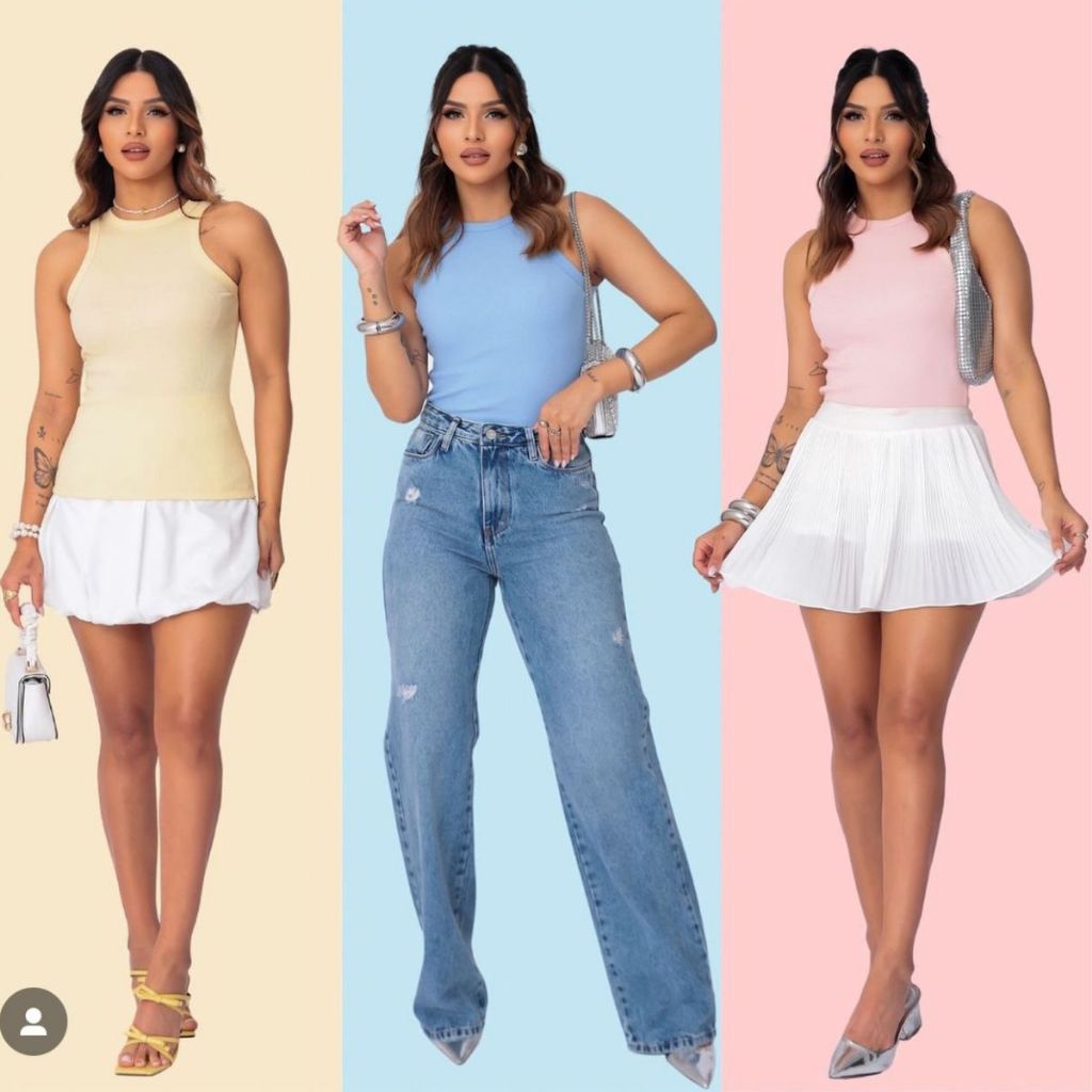 Kit 3 Blusa Regata Básica Casual Feminina Moda Gringa Trabalho Festa Dia a Dia BEL