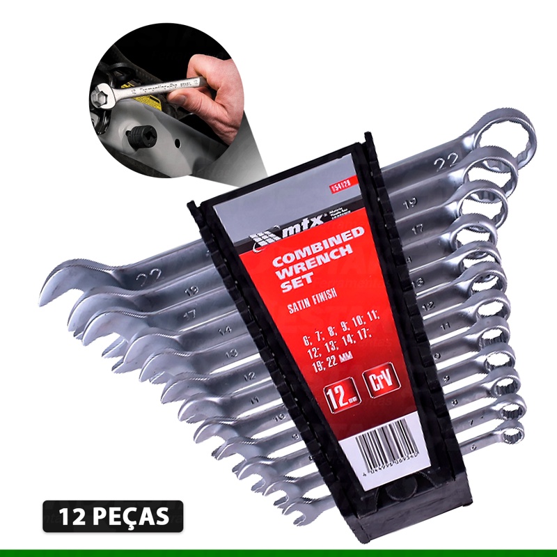 Jogo de chave combinada de 6 a 22 mm aço cromo vanádio com 12 peças - MTX