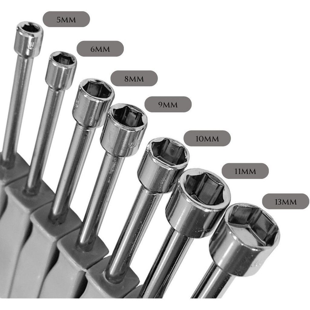 Jogo de Chave Canhão 7 Unidades Profissional Aço Cromo Vanádio 5 a 12 Cabo Resistente Kit 7 Manual