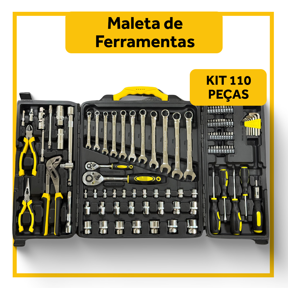 Jogo de Ferramentas Aço Cromo Vánadio Alicate Bits Chave 110 Peças Qualidade Profissional Maleta
