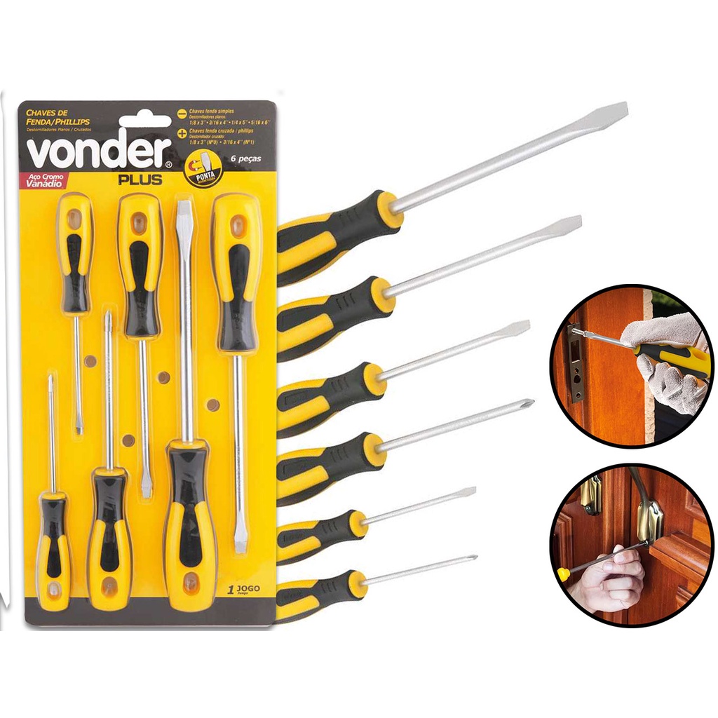 Jogo 6 Peças Chave De Fenda E Phillips Aço Cromo Vanádio Acabamento Niquelado Tamanhos Variados
