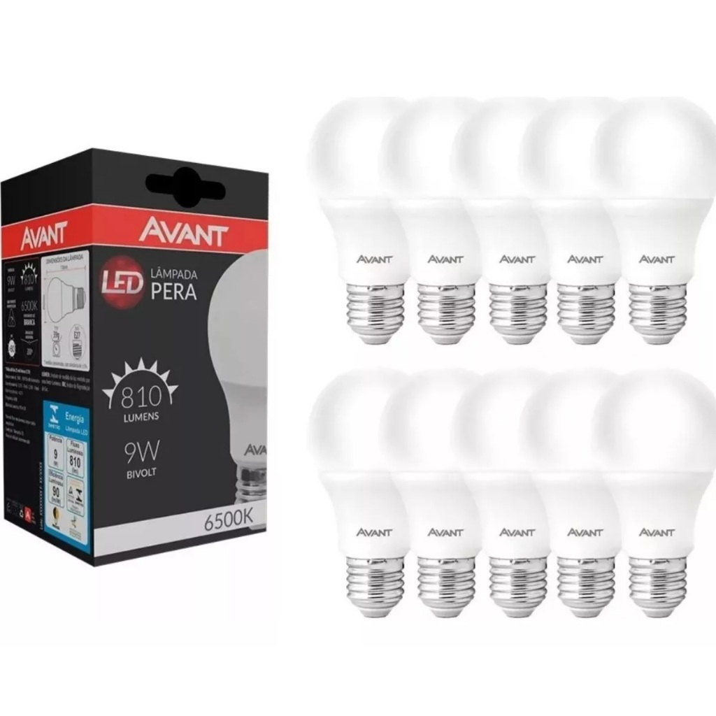 kit C/10 Lâmpada Pera LED, 9W, Luz branca 6500K, BR810-B, Bivolt, Avant