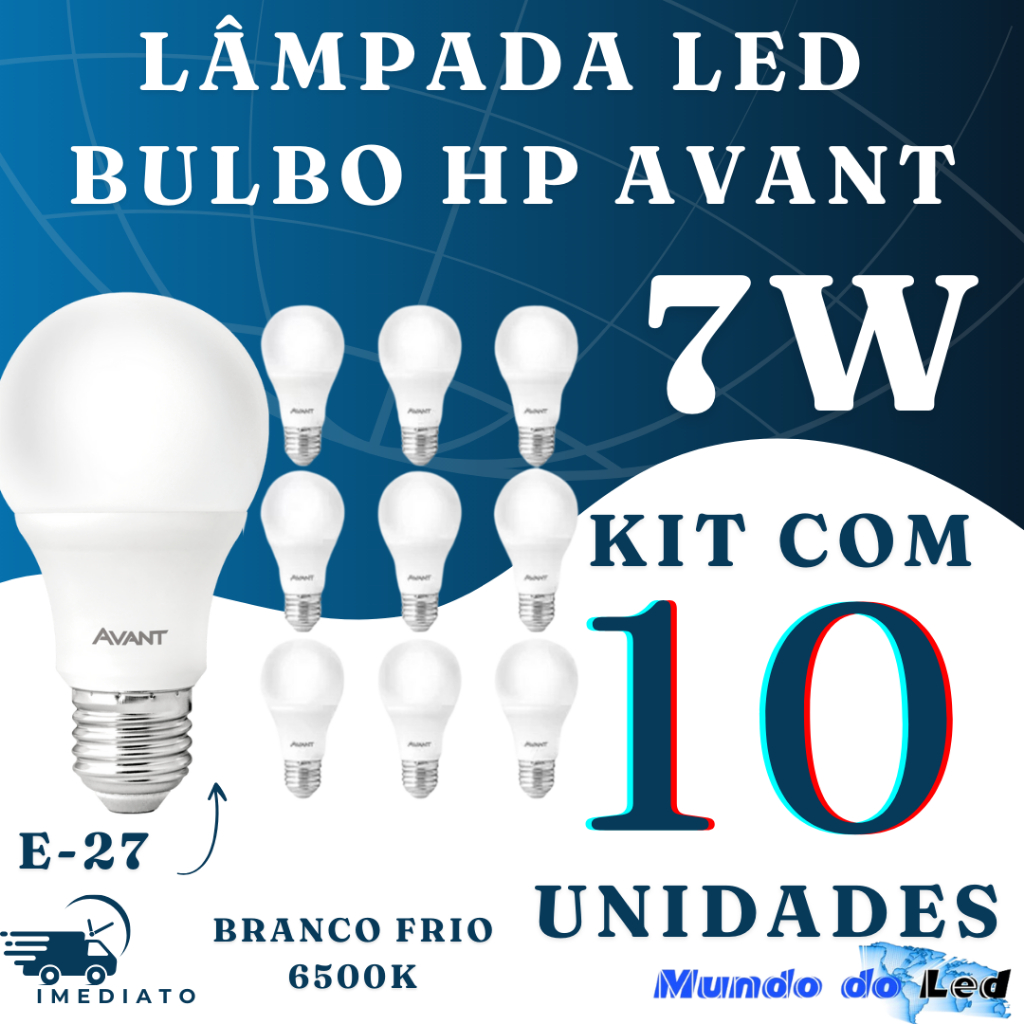 Kit 10 Lâmpada Pera Led Luz Branca 6500K Bivolt 7w Soquete E27 Avant