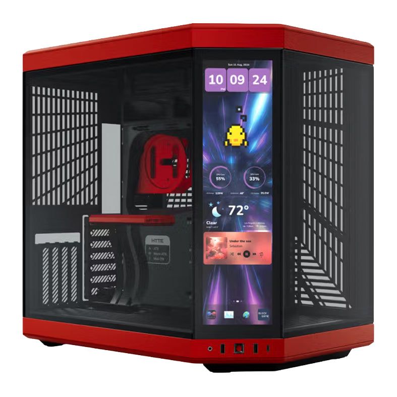 Gabinete Gamer Hyte Y70 Touch Infinite, Mid Tower, Lateral de Vidro, Display 14.5'' 60Hz, Black Cherry, CS-HYTE-Y70TI-RB
