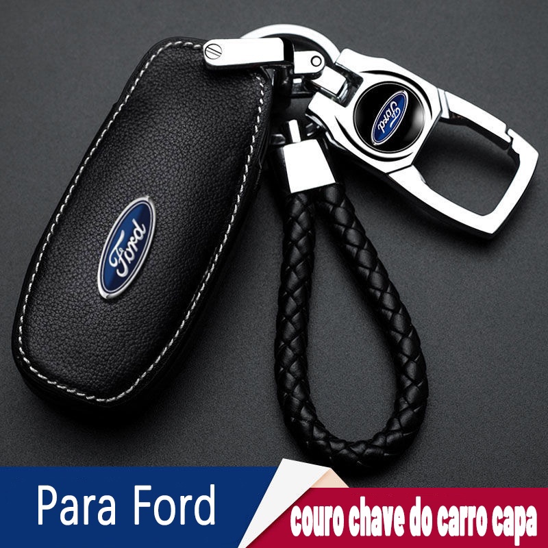 (Ford) Capa De Couro Genuíno Para Chave Do Carro, Chaveiro De Metal Criativo De Liga, Novo Logotipo Do Carro Chaveiro Carteira